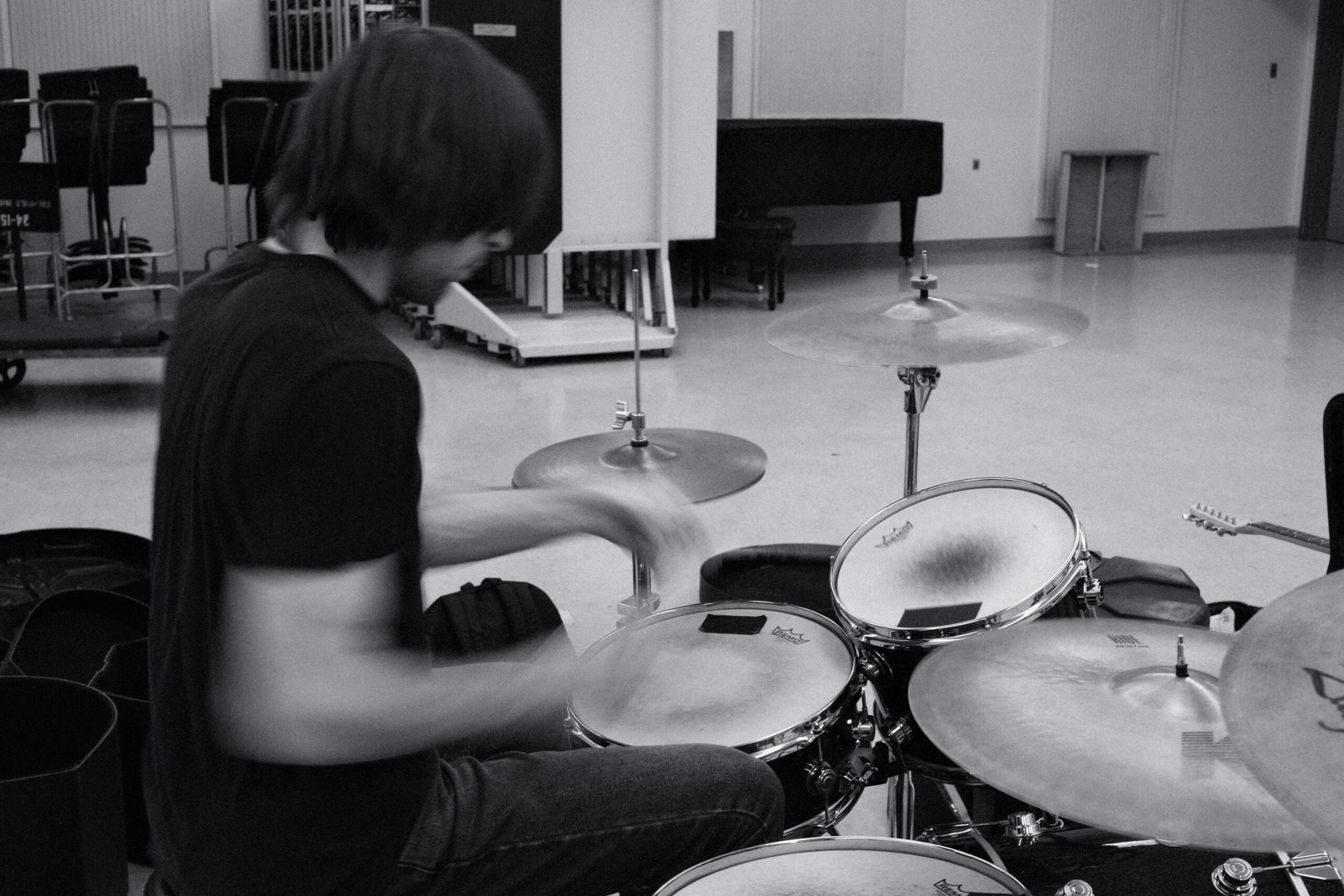 A typical practice day for these performers is marked by an energetic yet hectic atmosphere, as students move in and out of their respective rehearsal rooms, setting up their instruments and rehearsing their songs for many hours.