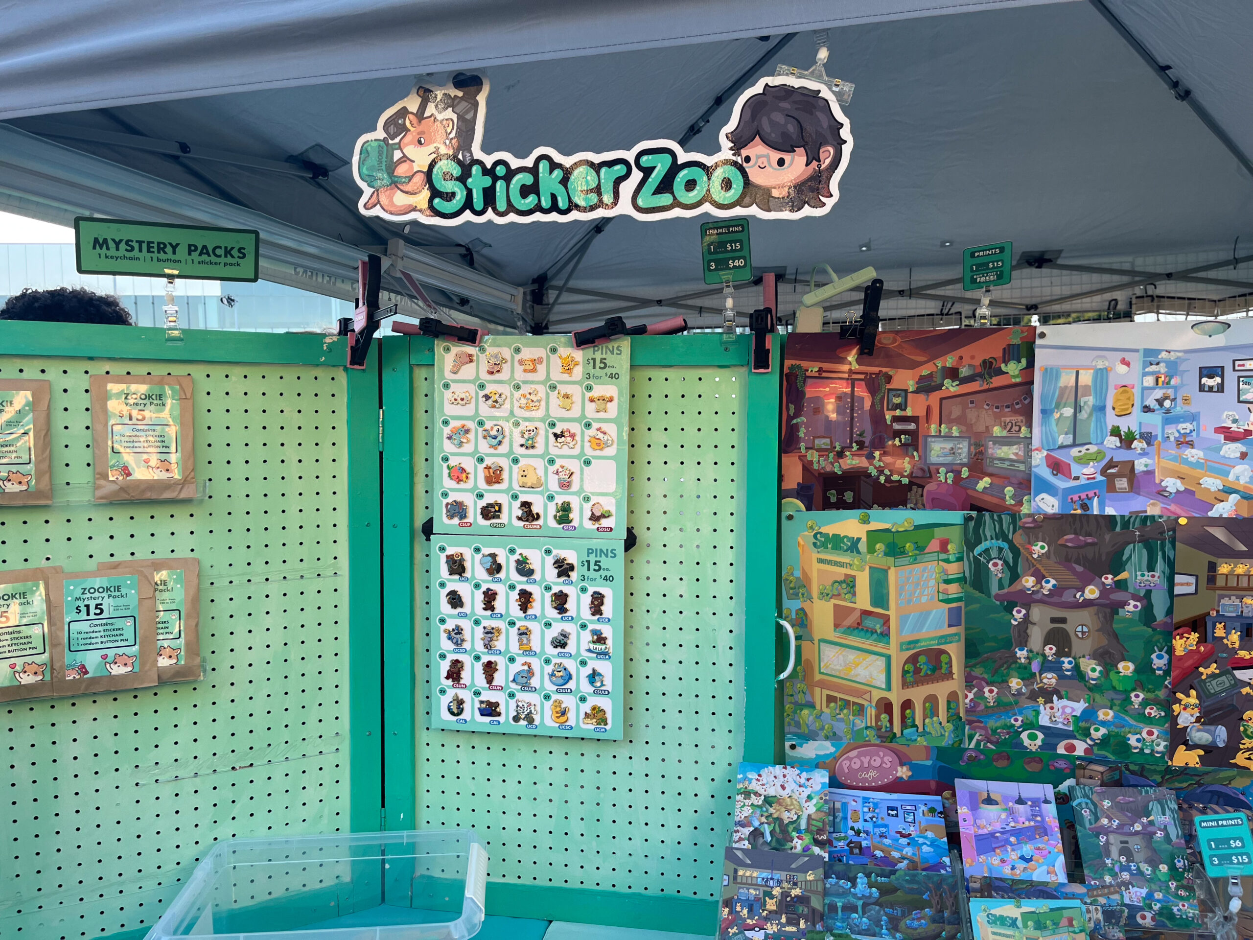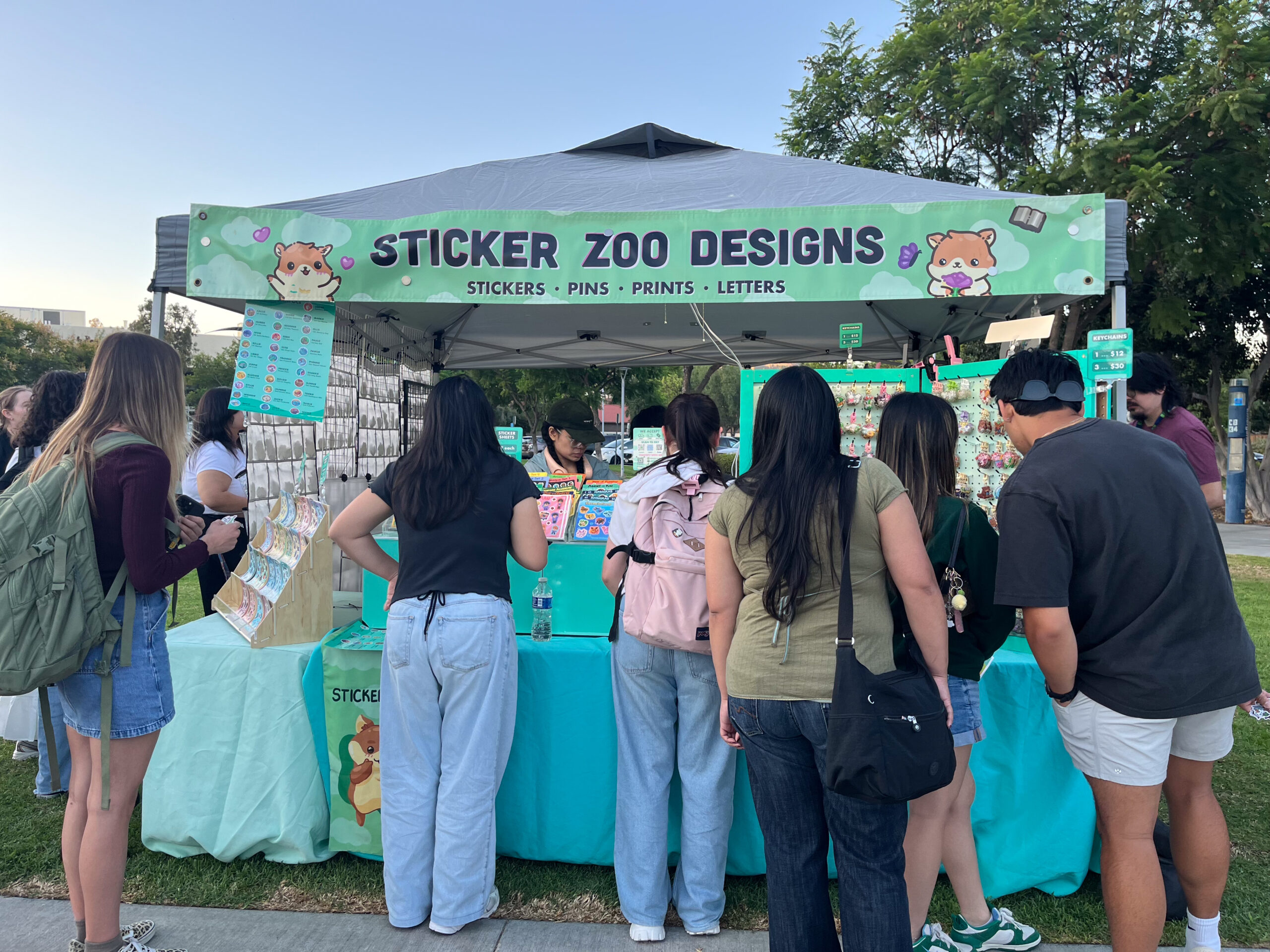 To combat the out-of-pocket costs of this tour, Zhou is also selling his products at some pop-up events happening near the schools he’s going to. In addition to his extensive selection of stickers, Zhou also sells keychains, enamel pins and prints of his art at these pop-ups.