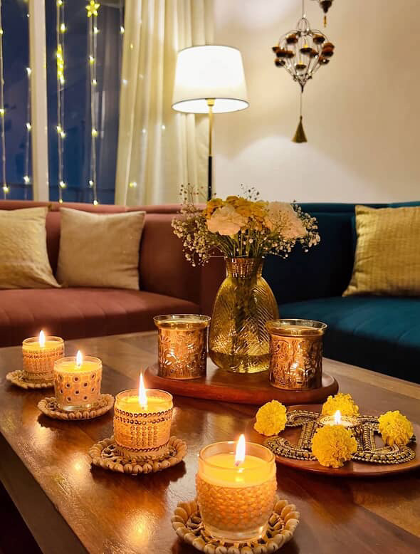 Diyas are small oil lamps traditionally made of clay. They represent enlightenment, hope, and are often used in religious ceremonies.