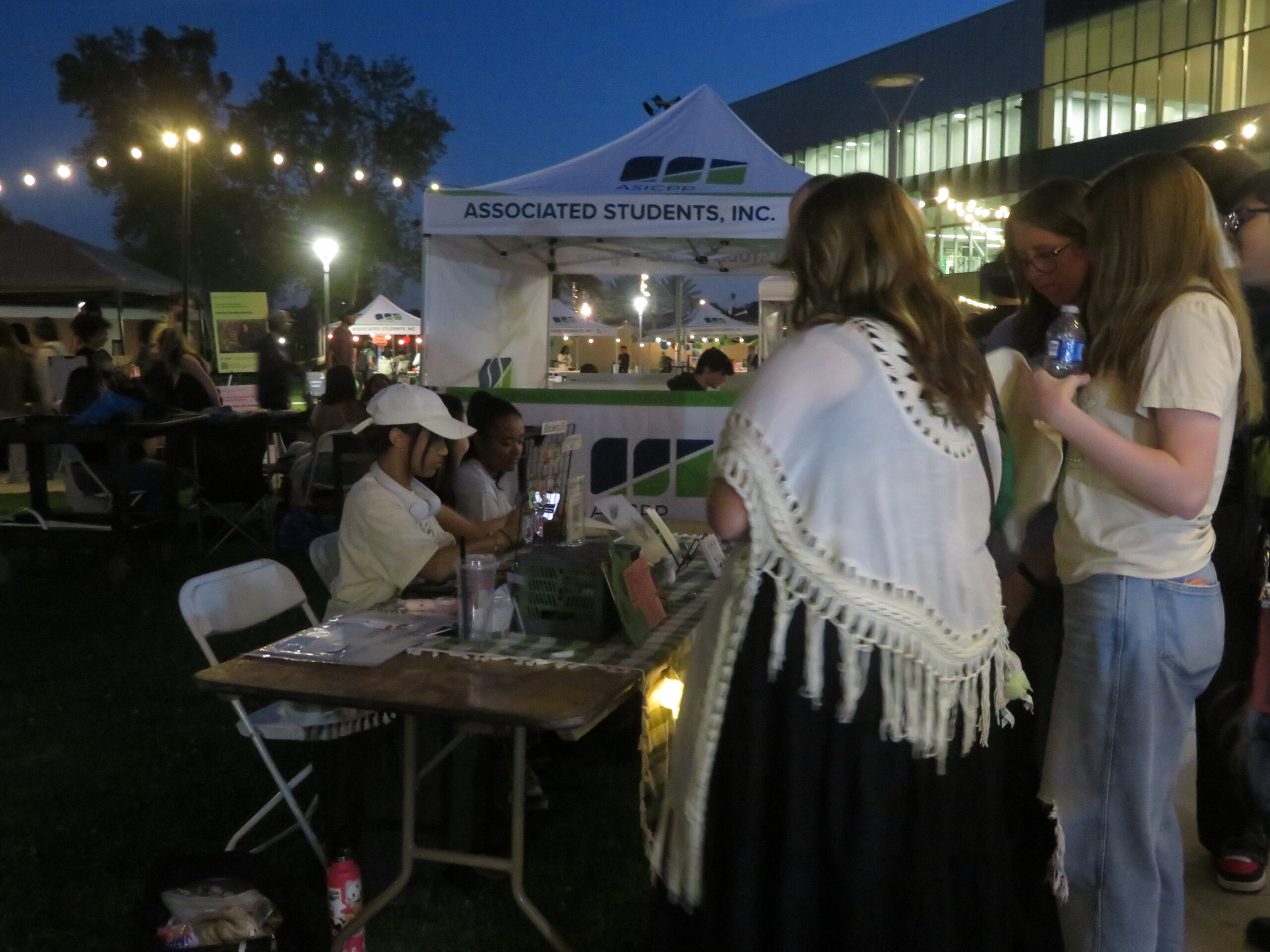 Music boomed through the Bronco Commons as the sun slowly descended behind the residential suites Feb. 26. Chatter filled the air and lines grew as the event went into full swing. Fairy lights strung up on lamp posts flickered on, and more students arrived to wander through booths and tables of student vendors.