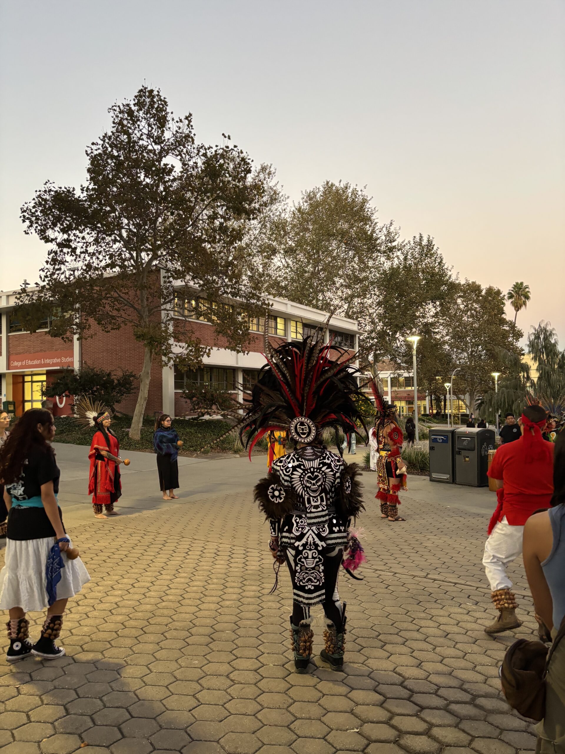 Una demostración y ritual curativo por bailarines aztecas en frente del edificio de CECCHE empezó la ceremonia. Bailarines, miembros del club y espectadores hicieron su camino al Bronco Commons al golpe de los tambores y repiquetea de maracas, mientras unos llevaban esqueletos de papel maché y un ataúd falso como un símbolo de la misión del club para la diversidad, equidad e inclusión en CPP.