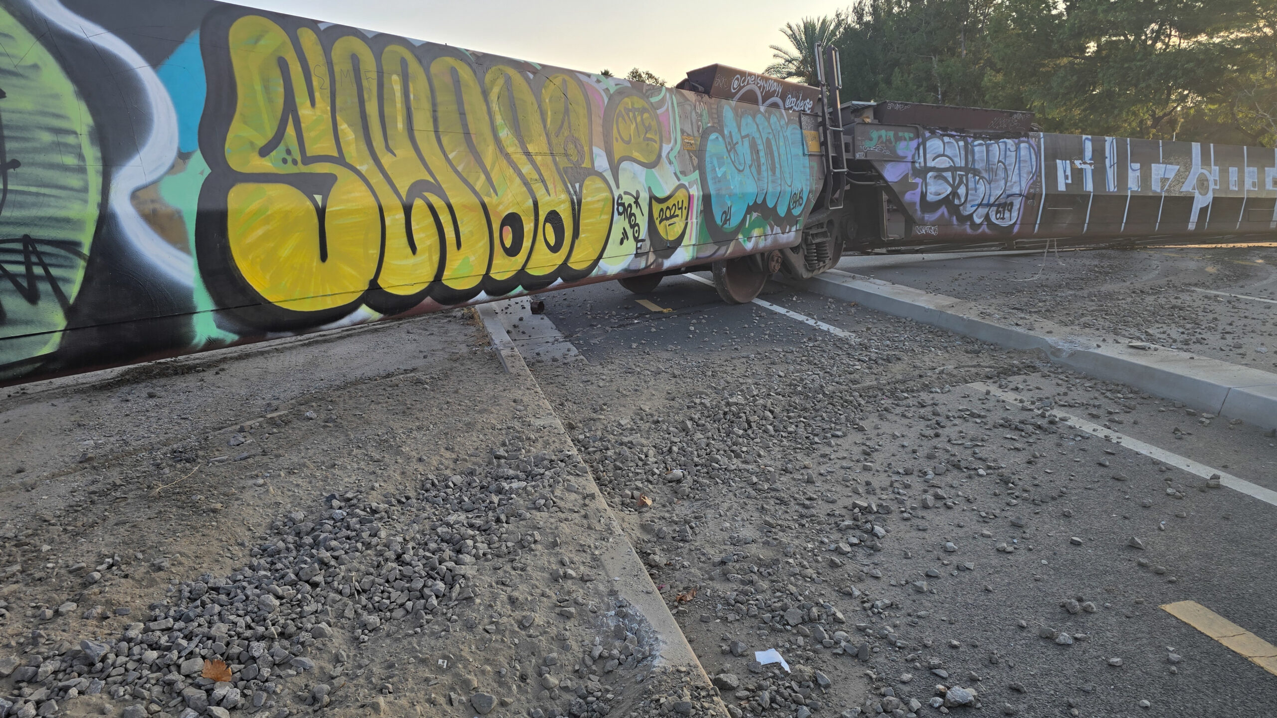 A set of four decommissioned rail cars derailed Wednesday around 3:45 p.m. blocking the intersection of Valley Boulevard and West Temple Avenue for more than seven hours and causing deep gashes to the asphalt.